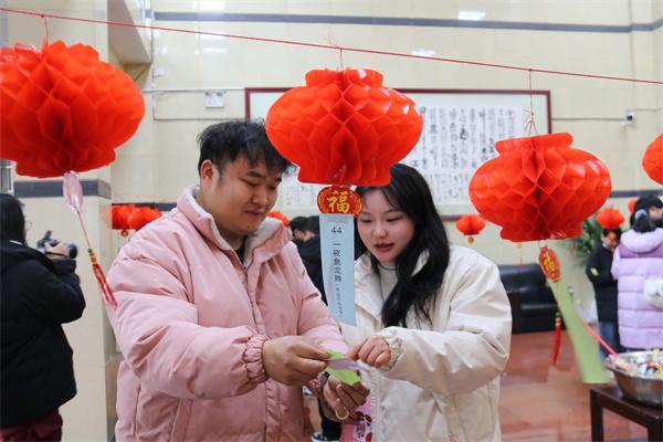 活动现场,一盏盏红彤彤的灯笼悬挂在空中,下面系着的五彩灯谜随风轻轻晃动,仿佛在向大家发出智慧挑战。干警及其家属们纷纷踊跃参与,或独自沉思,或热烈讨论,大家时而为猜出谜底而欢呼雀跃,时而又为捉摸不透的谜题而绞尽脑汁。谜题的设计将检察法律职能与传统节日习俗相结合,思维的火花在交流中不断碰撞,猜灯谜的趣味性在一来一往中得到充分的体现。