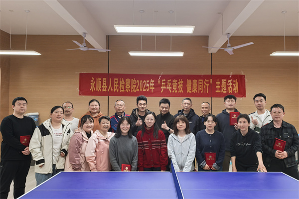 为深入贯彻落实“健康中国”战略,积极响应全民体重管理年号召,3月28日,永顺县人民检察院举办2025年度“乒乓竞技 健康同行”主题乒乓球比赛。