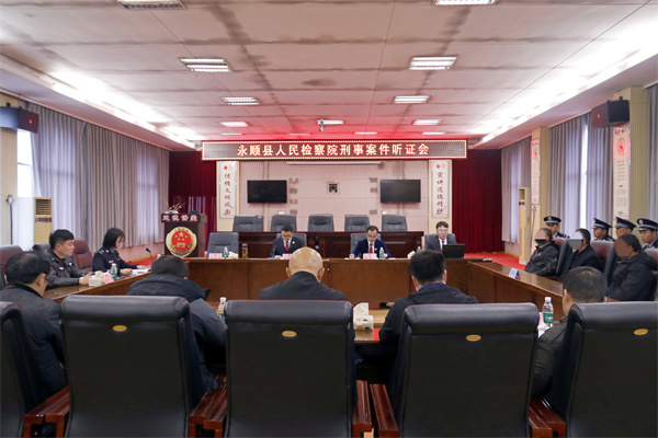 近日,永顺县人民检察院对张某等4人破坏生产经营案、杨某海故意伤害案、余某帮助信息网络犯罪活动案、贺某磊非法狩猎案进行集中公开听证,同时,对一名批准逮捕后家中小孩无人监护的在押人员有无继续羁押的必要性进行了听证。听证会由该院党组成员、副检察长刘嘉主持,邀请部分人大代表、政协委员、统战委员、人民监督员、公安机关侦查人员及律师参加。