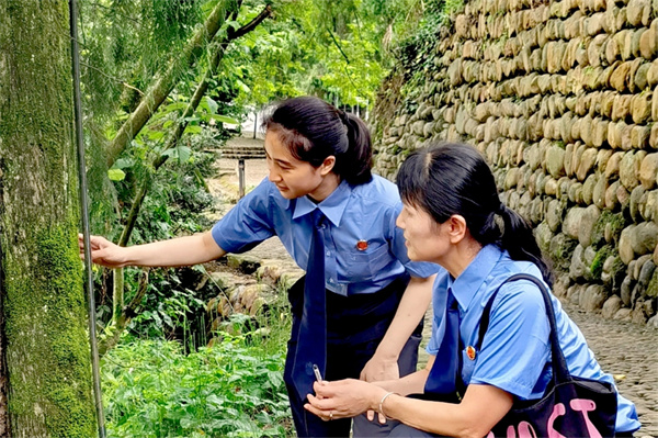 此外,该院还对“中国土家第一村”双凤村开展古树名木保护公益诉讼检察工作,让古树的枝叶在法治微风轻拂下摇曳,续写生生不息的绿色故事,守护土家村落的生态记忆与乡愁。该院还依法打击破坏林木案件,积极推进生态修复“进行曲”,对滥伐者实行“补植令”,在案发地打造“检察公益林”。该院联合相关部门加强林木保护普法宣传,强化“行政监管+检察监督+群众自觉”的保护合力,共同守护溪州森林资源,让人民群众在树影婆娑中深切感受到“树龄即年轮,法治即传承”的历史深意。
