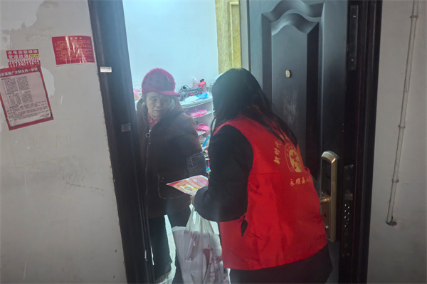 “王奶奶,春节快到了,提前给您拜个早年!这是我县今年对烟花爆竹禁燃禁放的最新通知,我来给您详细讲讲。”志愿者与社区工作人员一同敲开了居民的家门,耐心细致地解读通知内容,解答居民疑问。