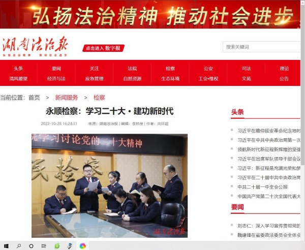 10月28日,永顺县检察院通过不同方式学习党的二十大报告,检察干警们结合工作实际,交流学习体会,谋划工作路径,展望未来发展。“将以更高的标准、更严的要求、更实的作风,依法能动履职,办好当下每一起案件,以检察履职保障经济社会高质量发展,推进国家治理体系和治理能力现代化。”党组成员、副检察长刘嘉谈道。