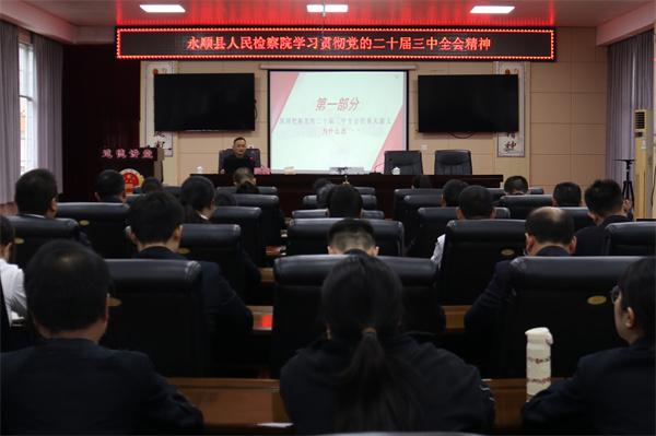 10月16日,永顺县人民检察院召开深入学习贯彻党的二十届三中全会精神专题辅导讲座,邀请县委党校常务副校长向胜军作专题宣讲,全院干警及书记员参会。