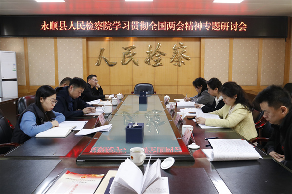 3月26日,永顺县人民检察院召开学习贯彻全国两会精神专题研讨会,深入学习贯彻全国两会精神。会议由党组书记、检察长于永亮主持,班子成员及内设机构负责人参会。
