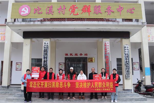 12月20日,永顺县人民检察院“黎明”党团先锋志愿服务队组织志愿者深入该院乡村振兴联系点颗砂乡比溪村开展扫黑除恶普法宣传活动。
