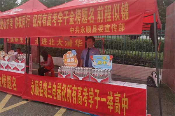 “祝大家发挥出‘粽’、金榜题名!”“同学们,这里有免费的水和防暑药品提供,祝你一切顺利,高考加油!”“这位同学,考试加油,祝你梦想成真!”